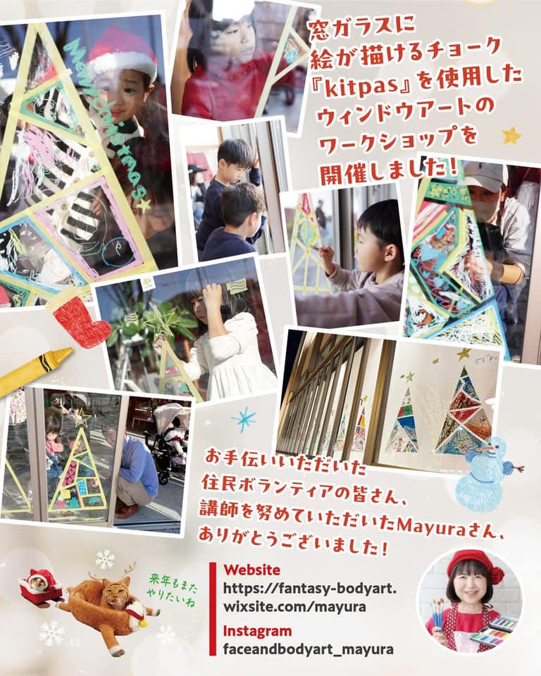 クリスマスウィンドウアートと、クリスマスオーナメント作りのワークショップを同時開催